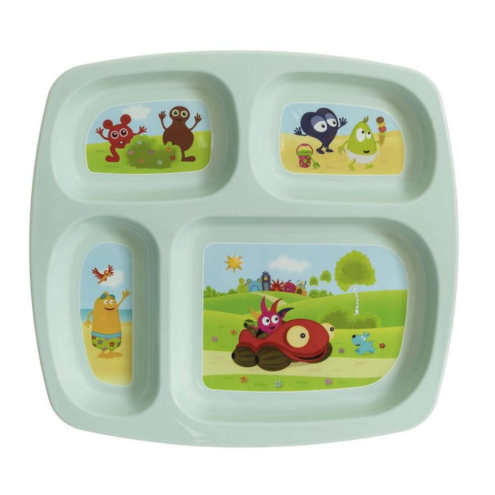 Nu fås en flot og farverig Babblarna-sektionstallerken med fire rum til at dele godbidderne i.