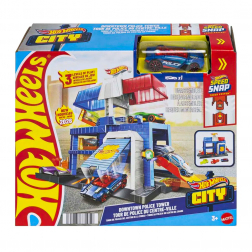 Hot Wheels City Downtown Police Tower-legesættet udvider legen med tre niveauer fyldt med børnefavoritter som ramper, sporskifter og realistiske banedetaljer.