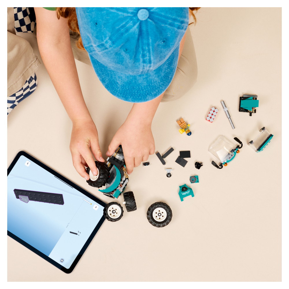 Børn kan nemt bygge LEGO Traktor legesættet med LEGO Builder appen, hvor de kan zoome ind på og dreje modeller med 3D-vejledning, gemme projekter og følge deres fremskridt. Byg-selv-sættet indeholder 204 elementer.