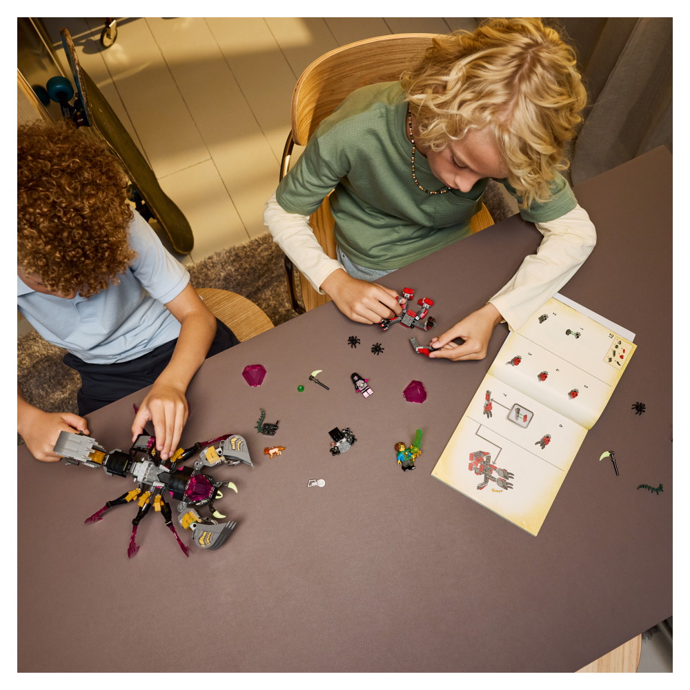 Fantasy-skorpionen er et 6-benet væsen med kløer, skydere og en knusende graverhale, og den biomekaniske hveps er et bevinget rovdyr med en giftig graverbrod og skydere. Sættet indeholder minifigurer af Mateo, Cooper og Arika, som inspirerer til rolleleg, og Mateo har et samlerobjekt af et grønt sværd. Der er også en Z-Blob-figur, 3 edderkopper og et lyserødt diamantæg, som Mareridtskejseren har fiflet med, og som udklækker en samlerfigur af et orange skattedyr.