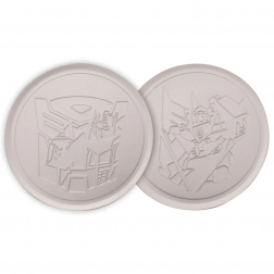 Beskyt bordet med kraften fra Cybertron! Denne stilfulde 4-pak metalunderlag har to prægede designs - Autobots og Decepticons - så du kan vise, hvor din loyalitet ligger (eller holde kampen i gang omkring kaffebordet).
