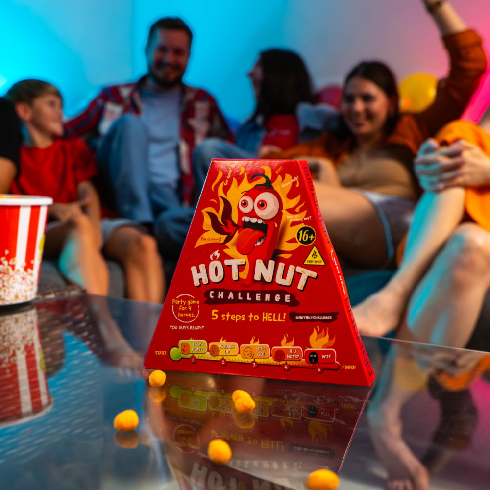 Prøv at overvinde dine hotness-grænser sammen med 2-4 venner! Start med den mildeste nød (EASY PEASY) og arbejd dig op til den stærkeste (WTF). For hvert niveau, du mestrer, modtager du et klistermærke, som du stolt kan sætte på panden og vise alle, at du har klaret det! Del din præstation på sociale medier med hashtagget #HOTNUTChallenge for at konkurrere om årets hovedpræmie!