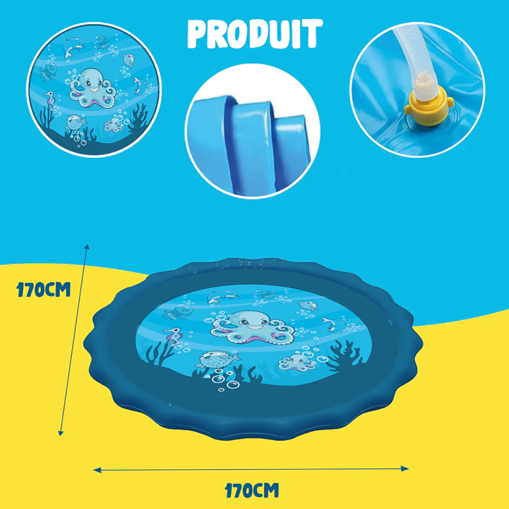 Du skal blot tilslutte vandslangen - og så er det bare at springe ud i plasket! Små springvand sprøjter op omkring tæppet og skaber en magisk vandring, som børn (og barnlige voksne) ikke kan få nok af.