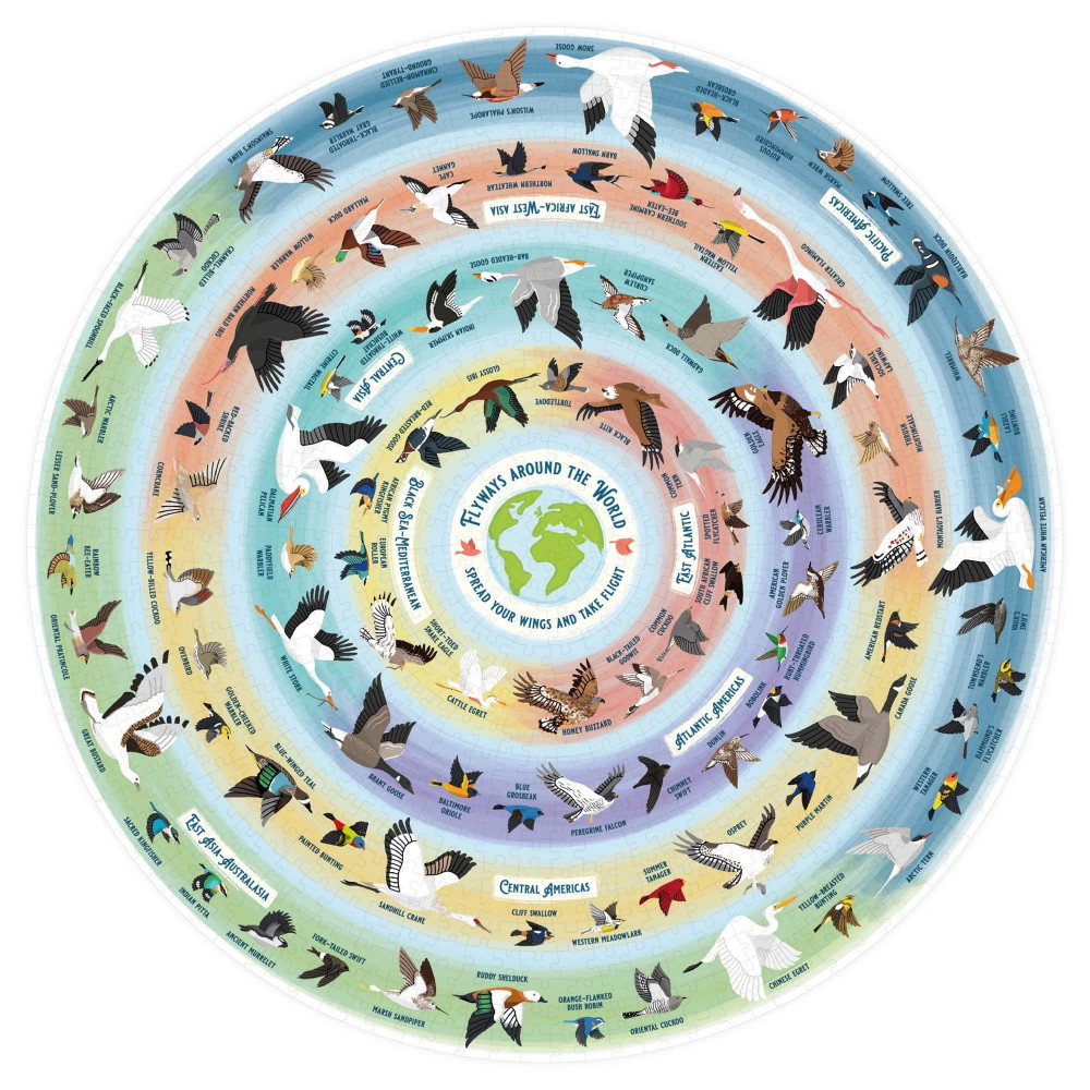 Dette puslespil indeholder over 100 smukke fugle, der svæver langs deres flyveveje.