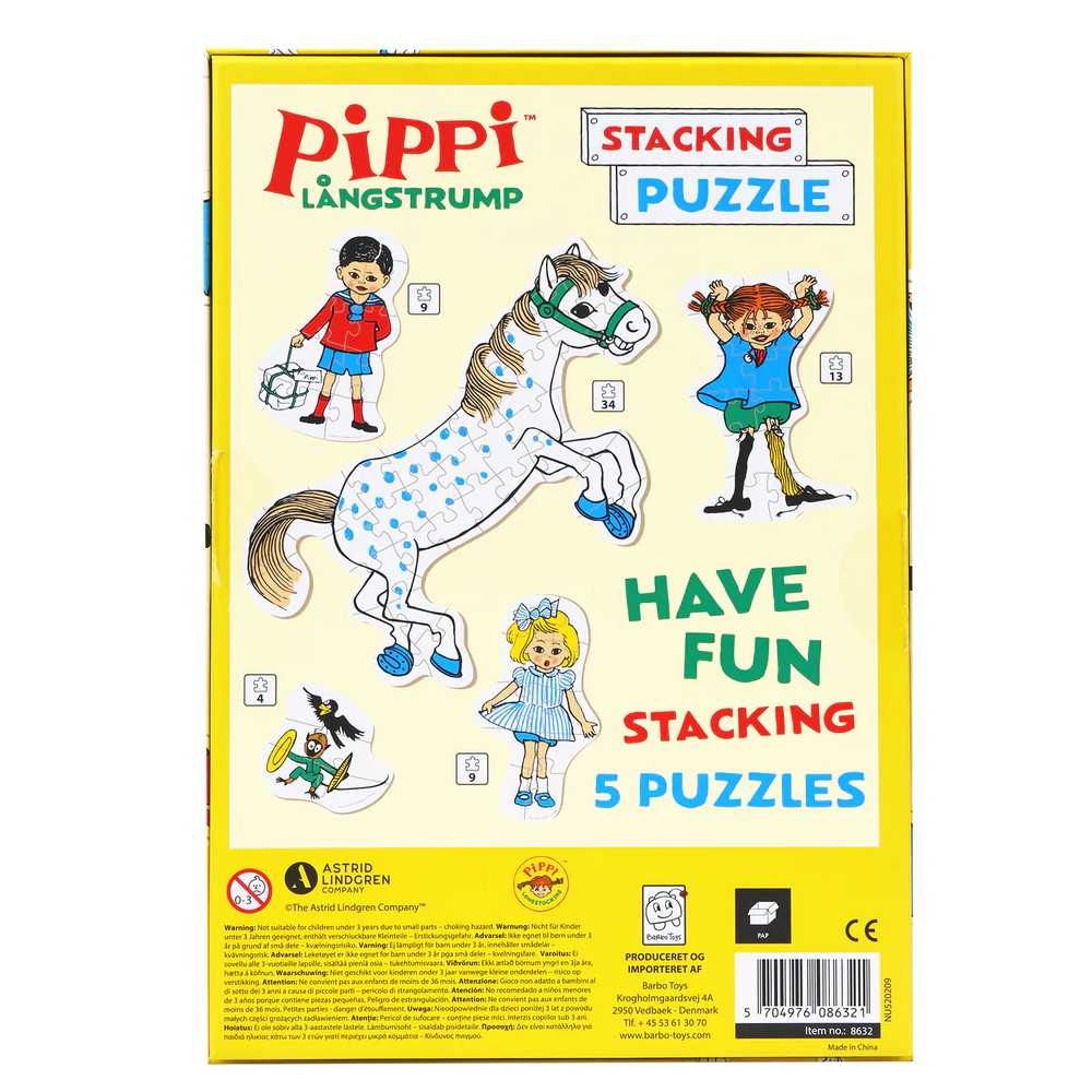 Pippi Stabling af puslespil 4, 9, 9, 13 og 34 Brikker
