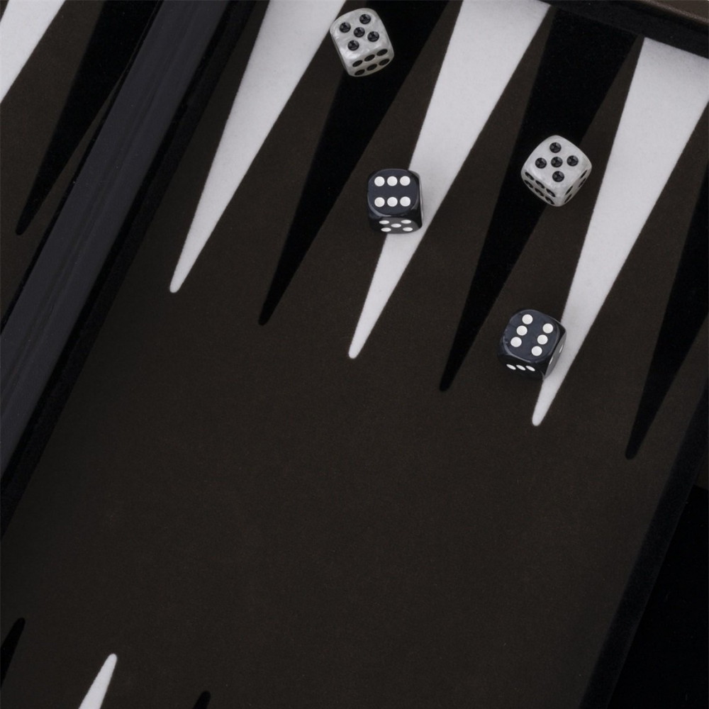 Dette eksemplar af backgammon leveres med en pose.