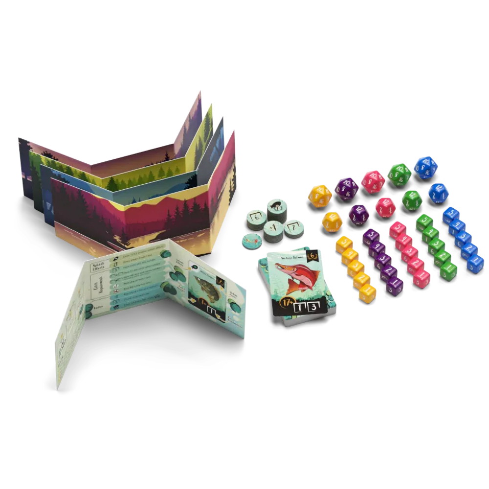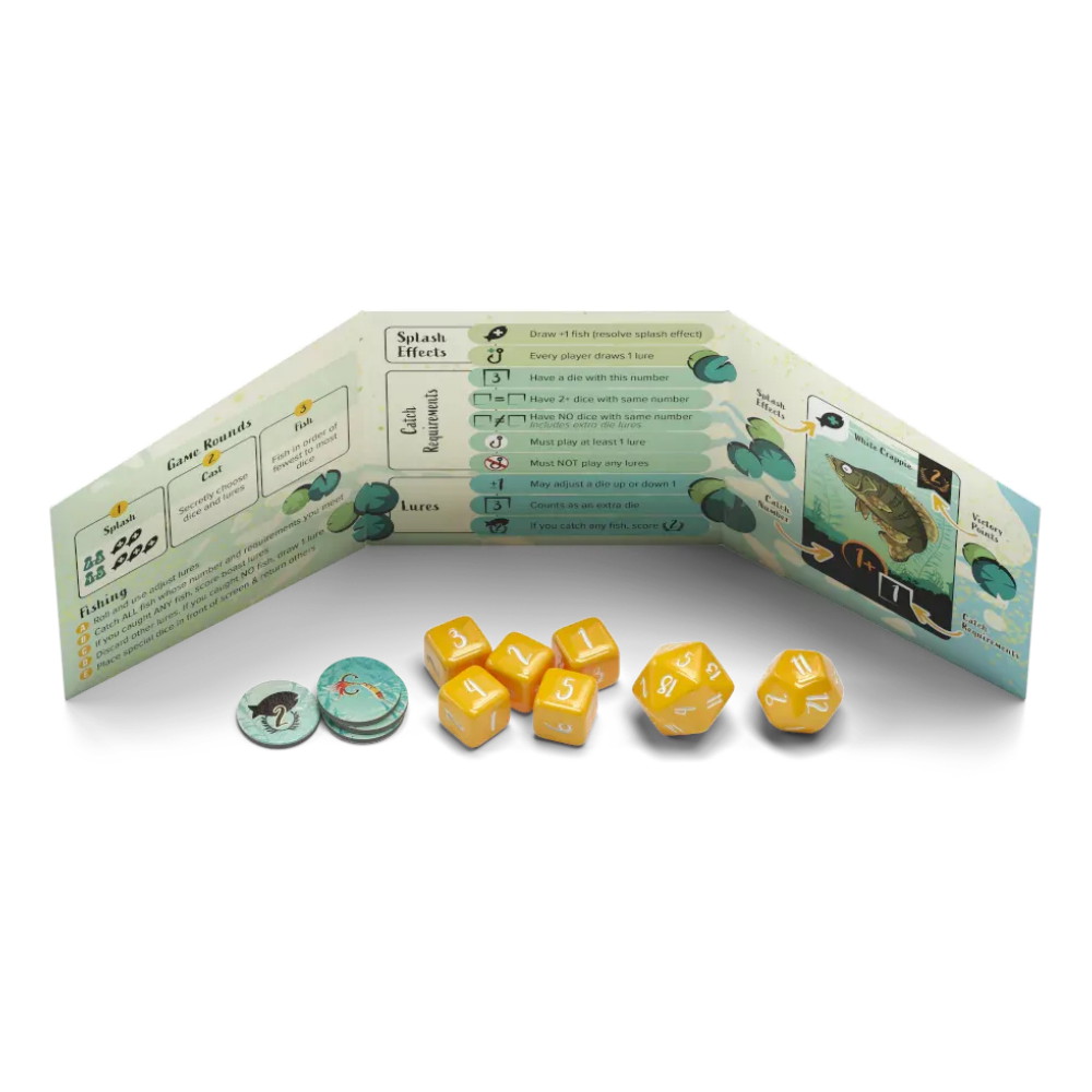 Konkurrer om at samle flest point ved at vinde fiskekort. For at fange en fisk kaster spillerne deres terninger for at slå fiskens målnummer samt opfylde eventuelle specifikke krav på kortet. Den, der opfylder disse krav og er tættest på målet, fanger fisken!