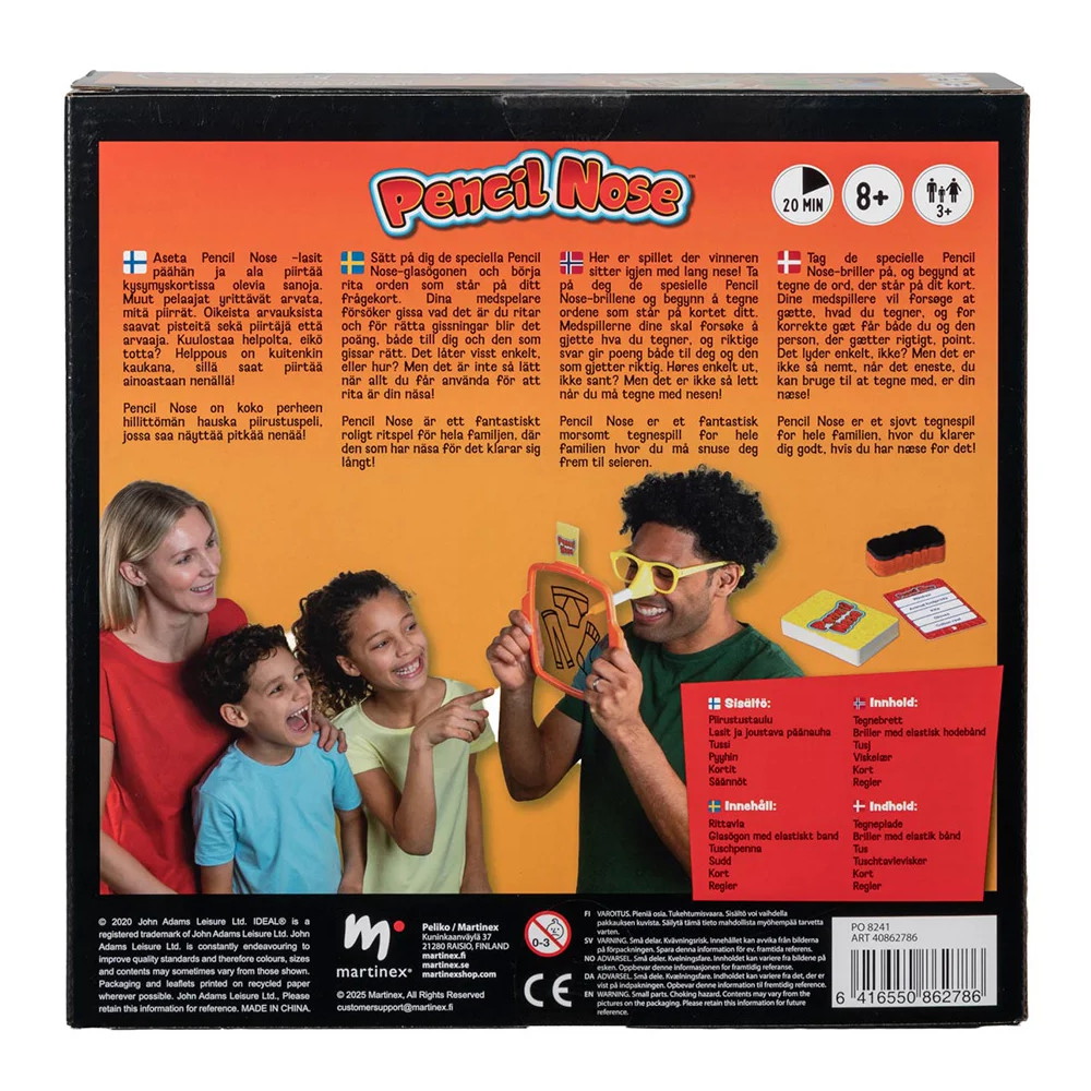 Tag de særlige Pennnäsa-briller på, og begynd at tegne den første af de fem ting på dit spørgsmålskort. Dine medspillere forsøger at gætte, hvad du tegner, og for et korrekt gæt får du point til både dig og den person, der gætter rigtigt.