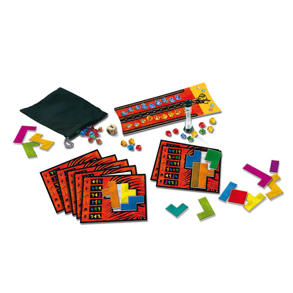 Et sjovt og udfordrende spil med forskellige sværhedsgrader for hele familien. Udfordre hinanden med Ubongo-puslespil, som er et puslespil med tre eller fire stykker i forskellige former. Den spiller, der først klarer at løse det vanskelige puslespil vinder juveler. Når spillet er over, vinder det spilleren med flest juveler i samme farve