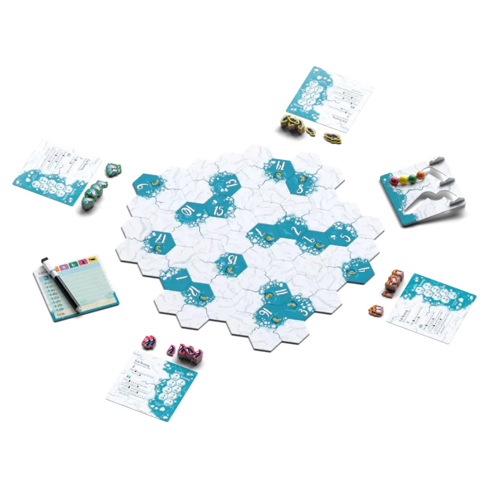 "Placer en pingvin" på en hvilken som helst ledig firkant ved siden af den lavest nummererede vand-firkant. Saml derefter din kugle op og placer den øverst på den samme Turn Tracker-kolonne.