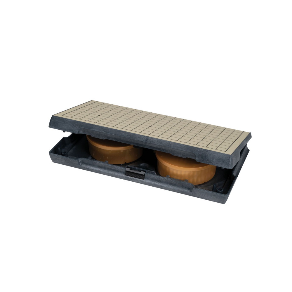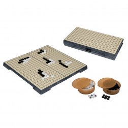 Spillet leveres i en praktisk æske og indeholder to dåser med sorte og hvide spillebrikker. Brikkerne er kombibagte og har en diameter på 13 mm og er lavet af plast.Stilfuldt farveskema i beige, sort og grå. Spillepladen har størrelsen 19x19 linjer.Vinderen er den, der har erobret flest områder og modstanderens brikker.