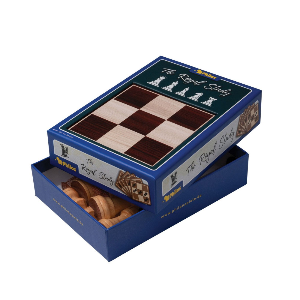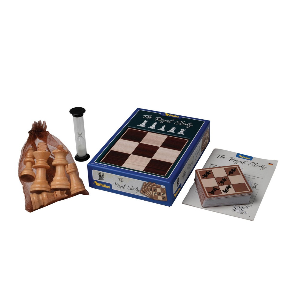 The Royal Study udfordrer spillerne til at løse miniskakgåder ved at estimere det mindste antal træk, der kræves, og derefter bevise, at de har ret.Indeholder: timeglas, skakbrikker, spillekort med opgaver og spillebræt.Materialer: Skakbrikkerne er lavet af gammelt træ, og andre dele er lavet af plastik.Spilles af 1-2 personer.