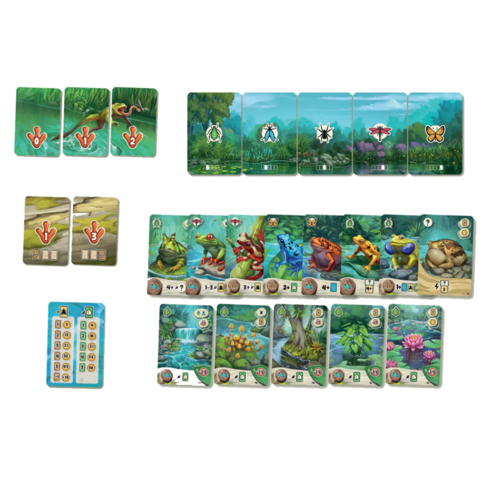En karakteristisk og fordybende mekanik i Pondscape er den "hoppende frø". Denne særlige frø spiller en afgørende rolle i økosystemet ved at jage efter mad, og dens handlinger bidrager direkte til, at spillerne optjener ekstra point baseret på den tilgængelige mad i deres dam. I sidste ende vinder den spiller, der demonstrerer den mest dygtige forvaltning af sin dam, hvilket resulterer i det mest afbalancerede og blomstrende økosystem.