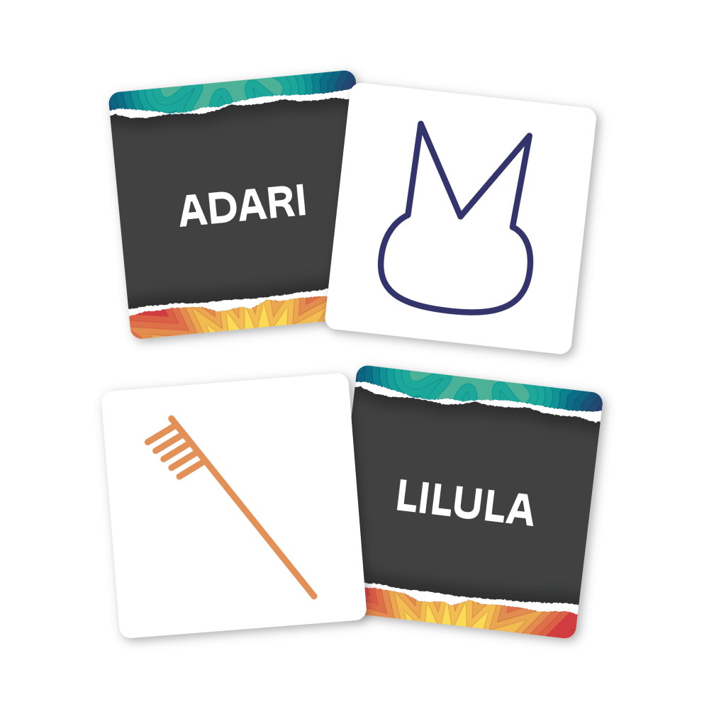Kortene i Bouba/Kiki viser et nonsensord på den ene side og en simpel illustration på den anden. I det grundlæggende spil står du over for et sæt af tre af disse ord og én form, og skal beslutte, hvilket ord der passer bedst til formen. Point optjenes ved at vælge det samme mål som dine holdkammerater.