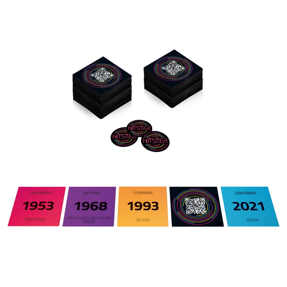Hitster Rock kan spilles alene eller sammen med andre versioner af Hitster (men passer ikke i DJ-standen, der var i det allerførste tryk)