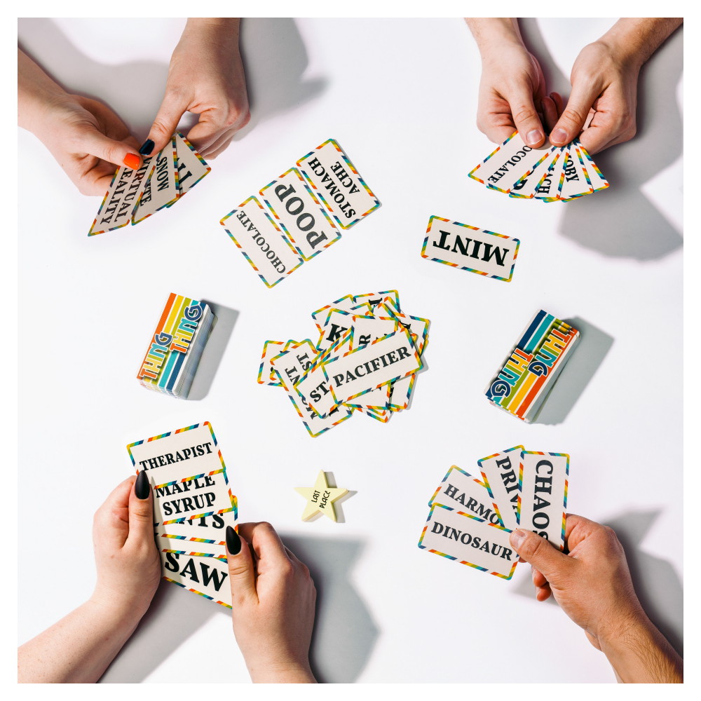 Du har en hånd fuld af “ting” – steder, personer, objekter og idéer – og skal finde en fælles kategori for at slippe af med dem. Men pas på: hvis din kategori er for bred, kan dine modspillere også komme af med kort.