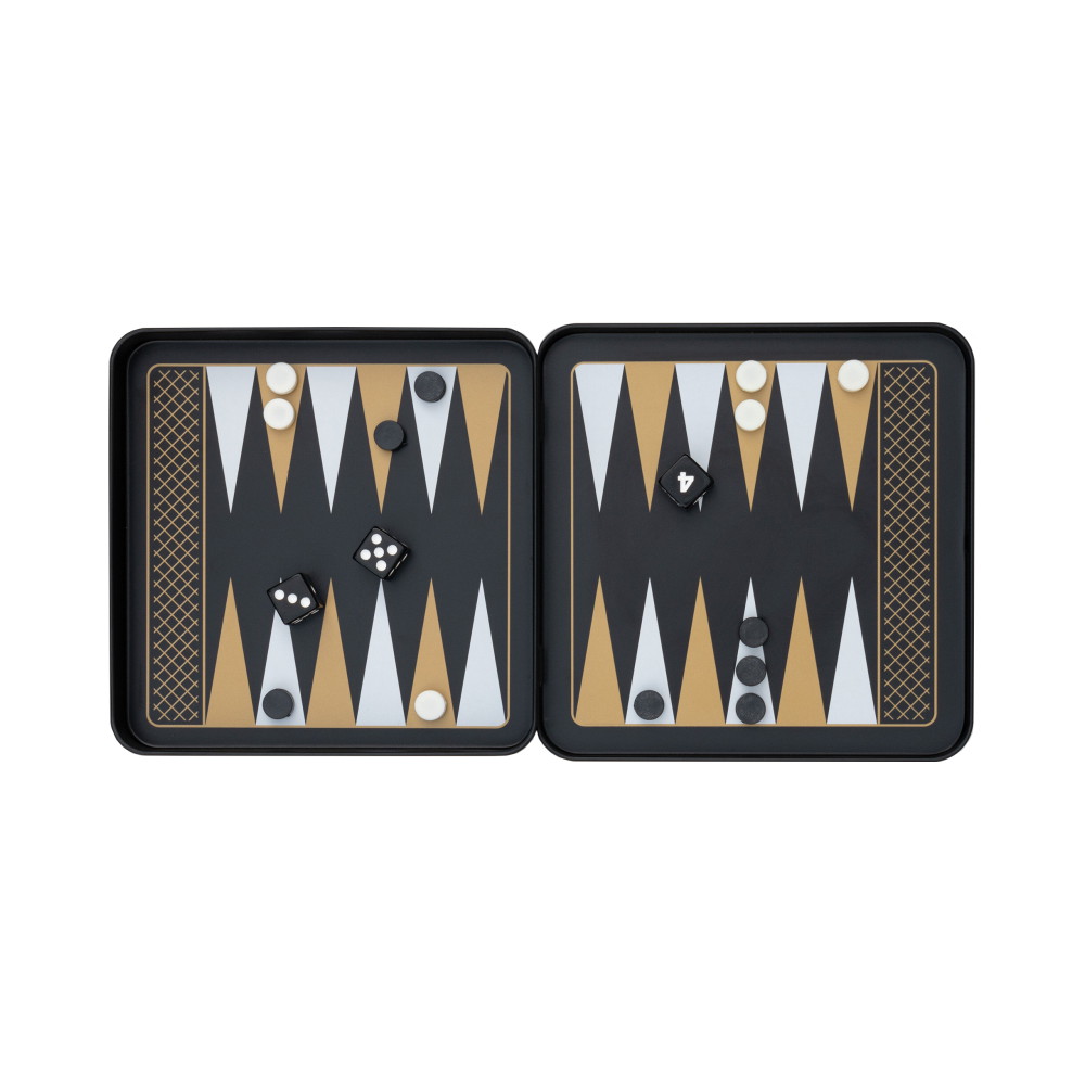 Dette sæt er skabt til spillere, der ønsker både funktion og design. De magnetiske spillebrikker opbevares i en blød velourpose, og selve spillepladen er smart integreret i en robust metaldåse. Intet klodset bræt, intet besvær – bare ren spilleglæde i ultrakompakt format.