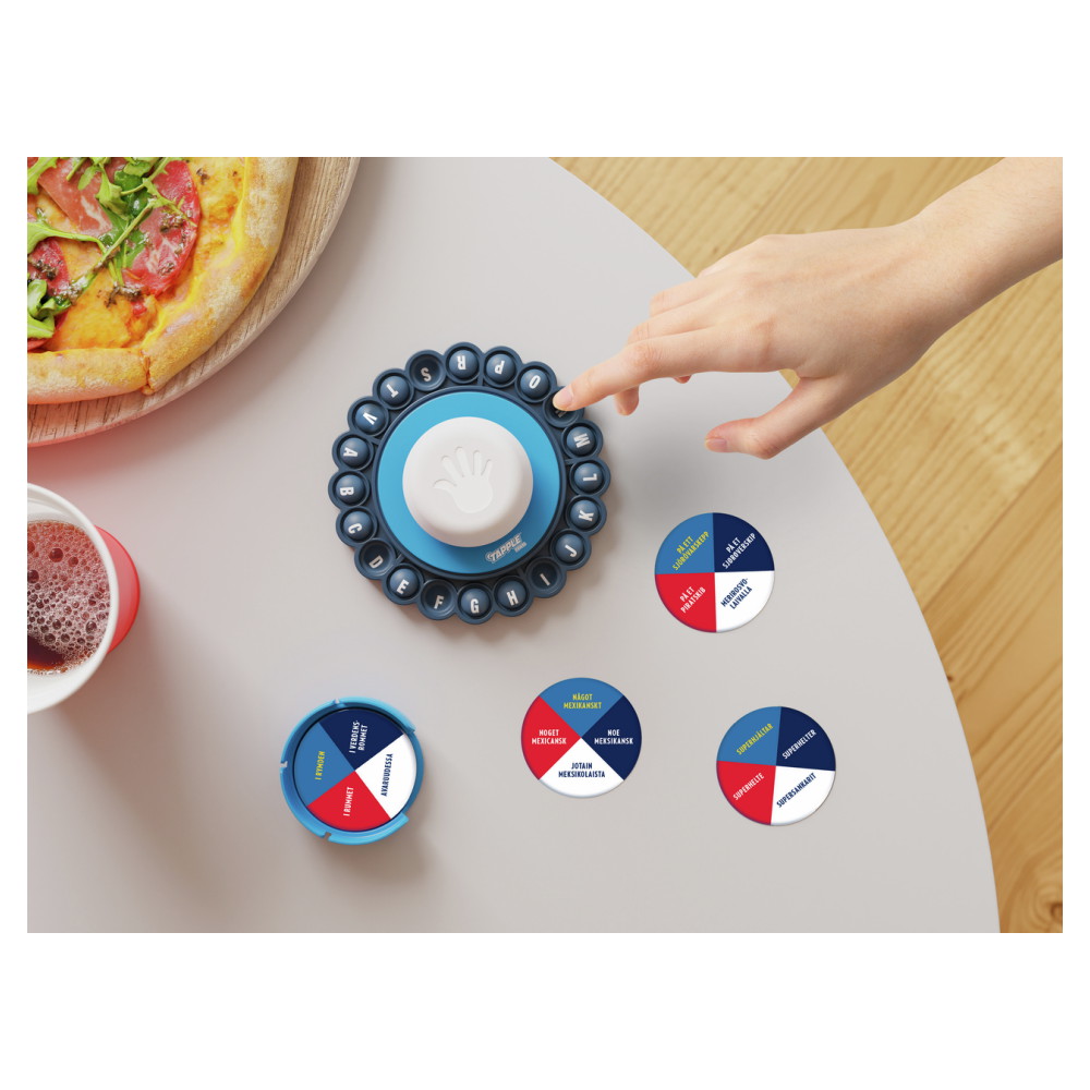 Denne praktiske og letlærte version indeholder et Tapple-hjul og kategorikort - perfekt til rejsen. Vælg en kategori, sig et matchende ord, tryk det første bogstav ned, og tryk på timeren i midten. Tænk hurtigt - tiden tikker! Hvis du ikke når at svare, er du ude af runden.
