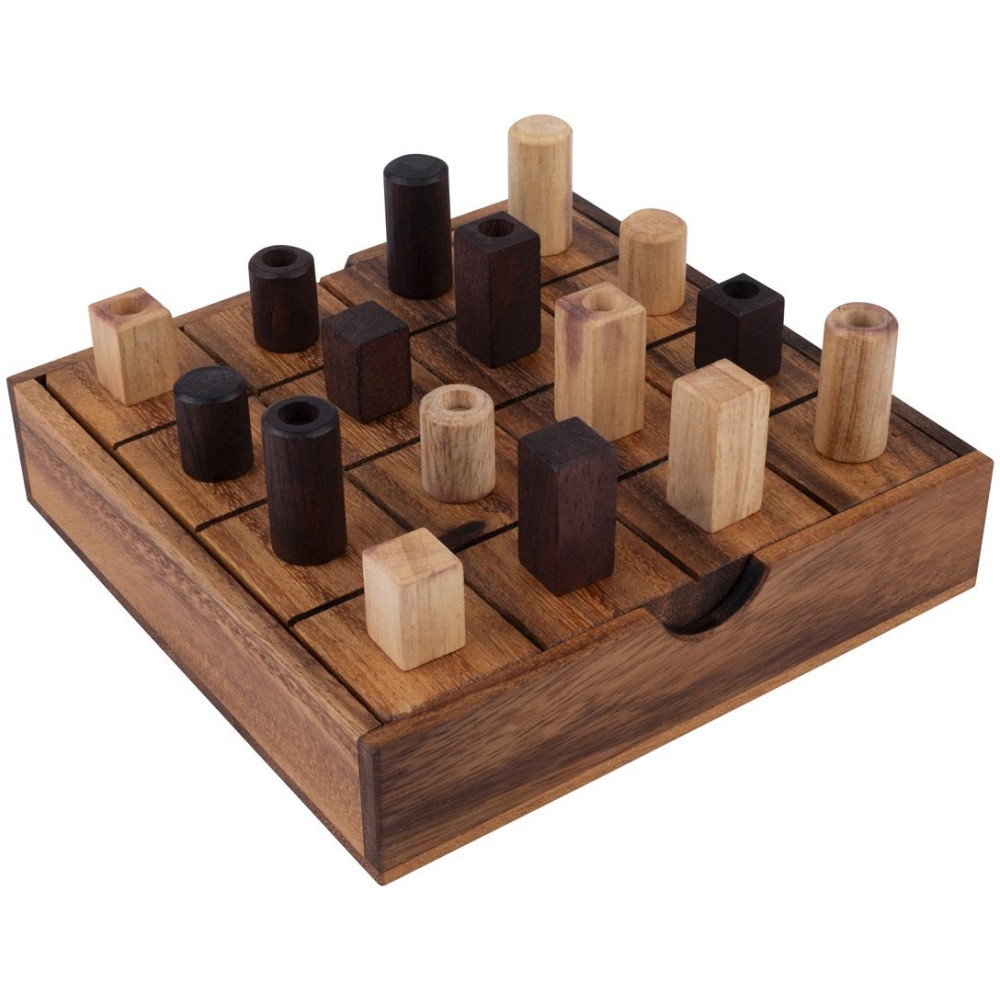 Udfordr dig selv og en ven med Alinia, et elegant og strategisk træspil for to spillere.