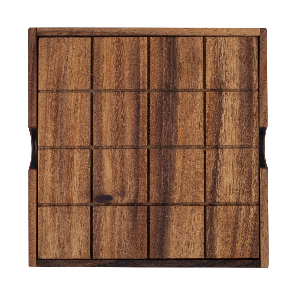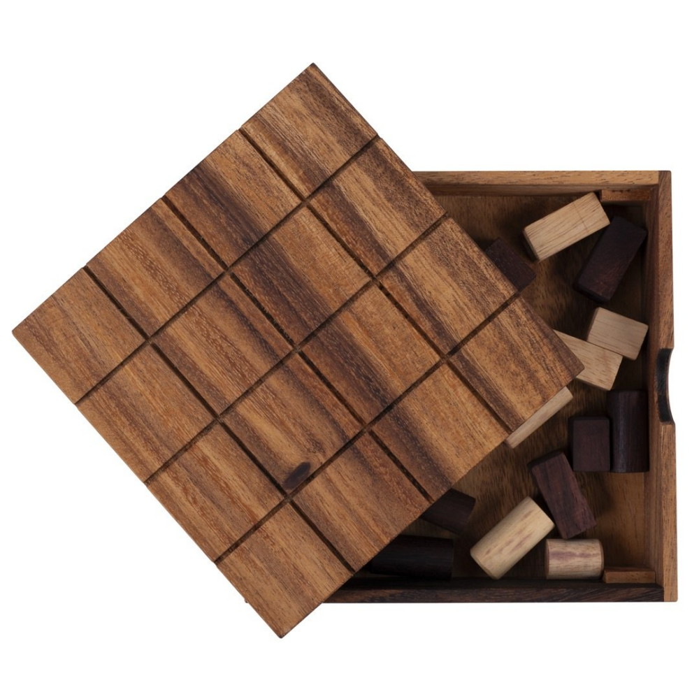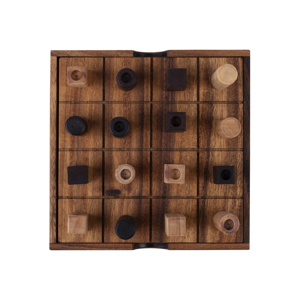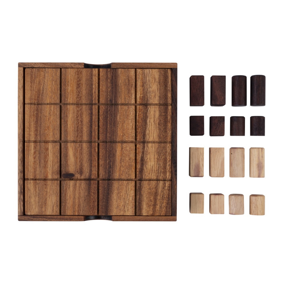 Træspilbræt med 4×4 gitter og indbygget opbevaringsrum