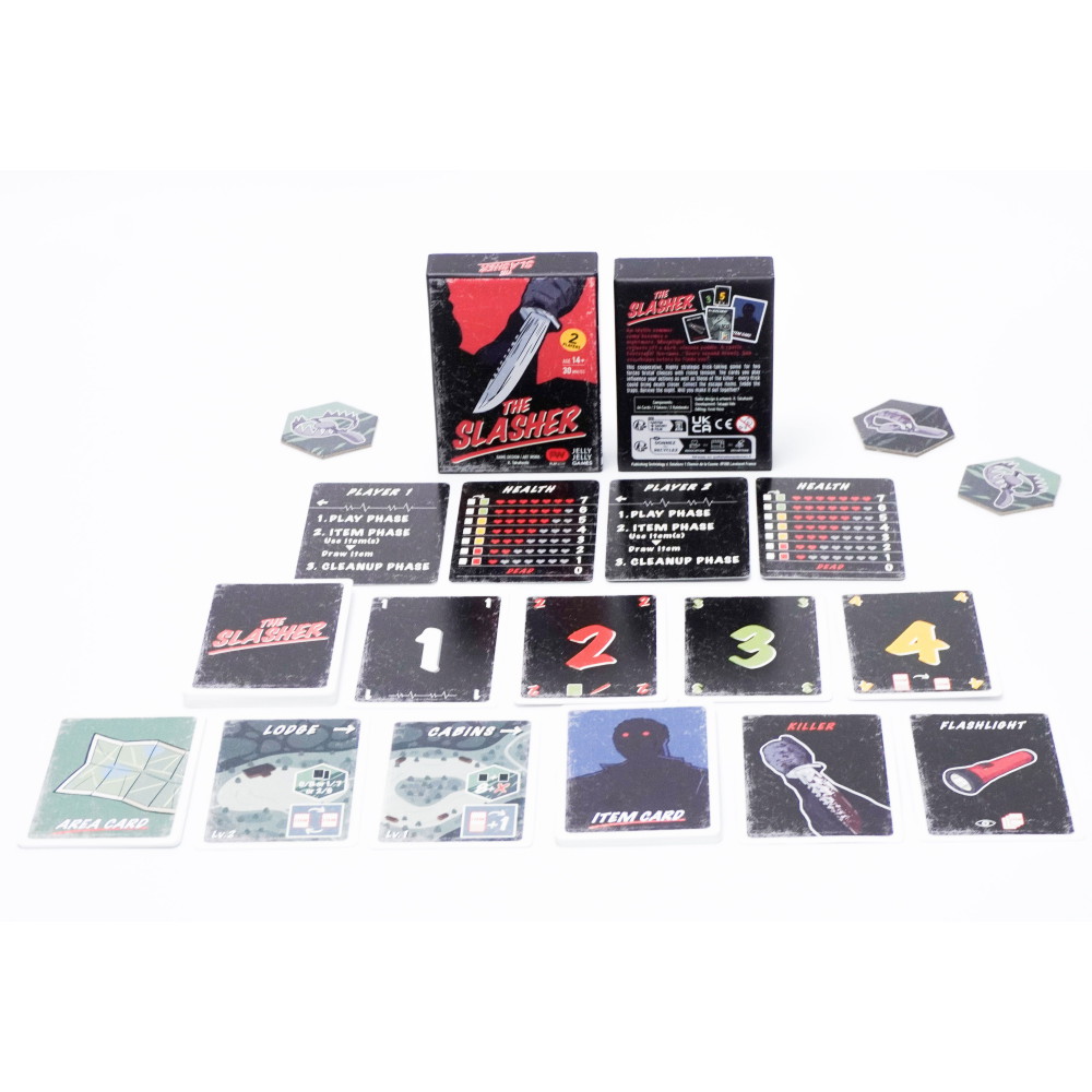 The Slasher er et intenst samarbejdsspil for to spillere, der kombinerer stikspil med gyserstemning. Hvert stik er en afgørende beslutning, hvor I samler ressourcer, udforsker farlige steder og forsøger at undgå dødelige møder. Begrænset kommunikation gør samarbejdet endnu mere udfordrende.