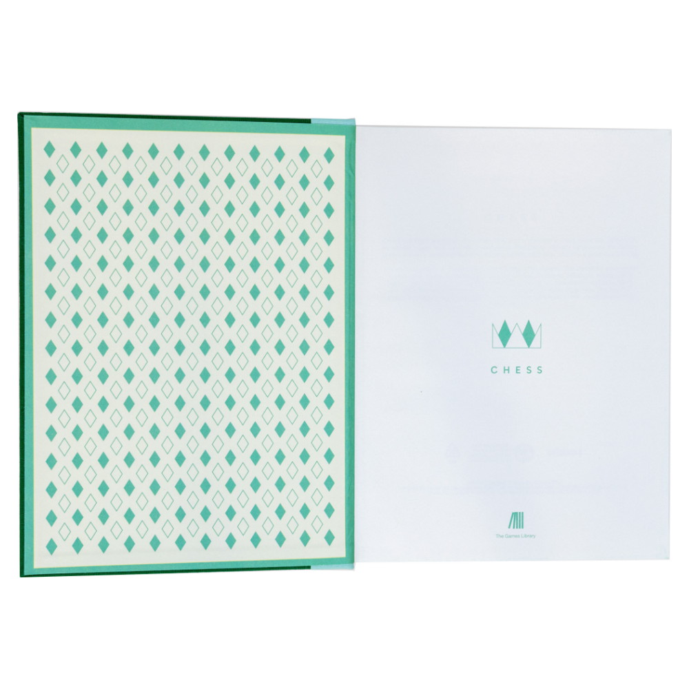 Åbn denne indbundne bog og opdag et skakbræt og spillebrikker fra The Game Library.
