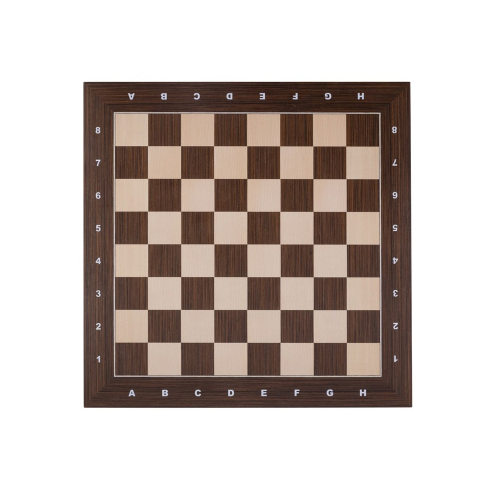Skakbræt i træ lavet med indlæg af valnød. Brættet er af høj kvalitet og indeholder ikke skakbrikker.