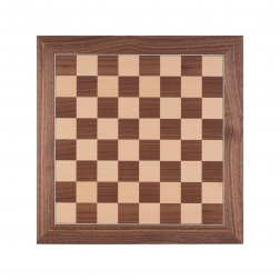 Skakbræt i træ lavet med indlæg af valnød. Brættet er af høj kvalitet og indeholder ikke skakbrikker.
