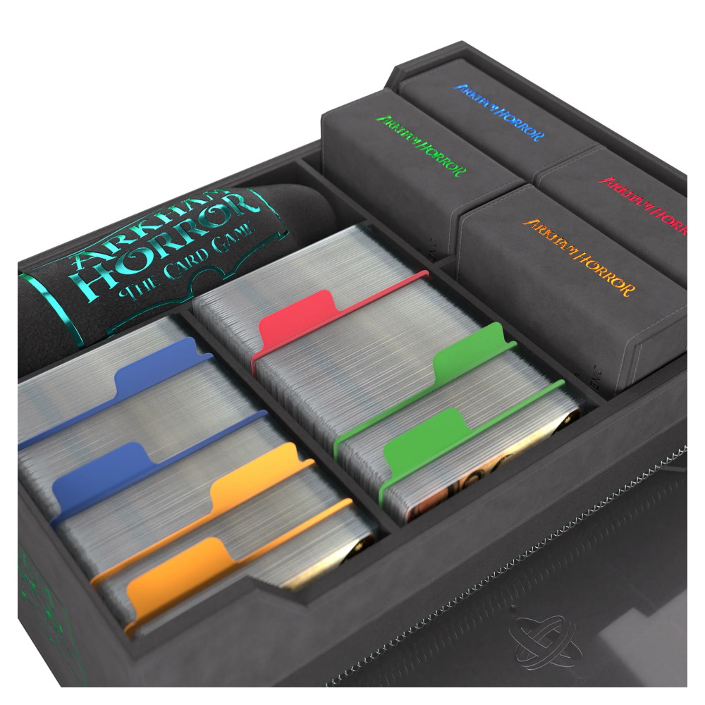 Plads til 4 Investigator Deck Tomes, 500+ kort med Sleeves, Token Bag og meget mere.