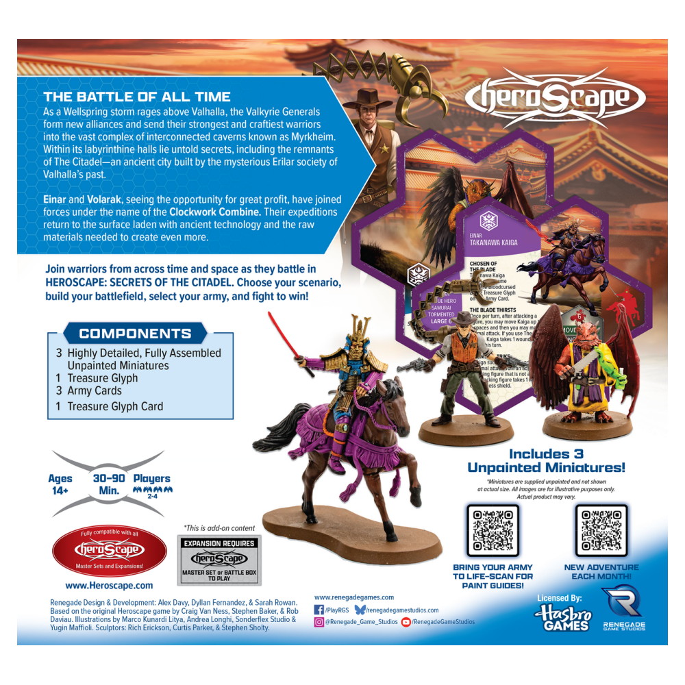 Heroscape: Crooked Crew of the Clockwork Combine Army Expansion introducerer tre unikke helte med hver deres spillestil. Fra revolverdueller til forbandede våben og eksperimentel teknologi – mulighederne er mange.