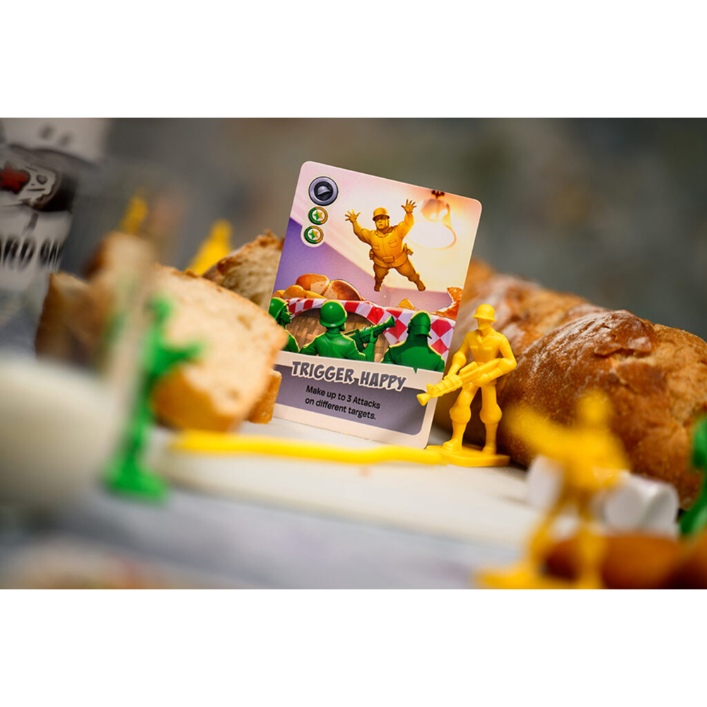 I Little Soldiers forvandles det, der normalt hører hjemme på middagsbordet – tallerkener, ostekasser og servietter – til skjulesteder og strategiske positioner. Hver spiller styrer en lille plastikhær, der kæmper for kontrol og overlevelse midt i kaoset.
