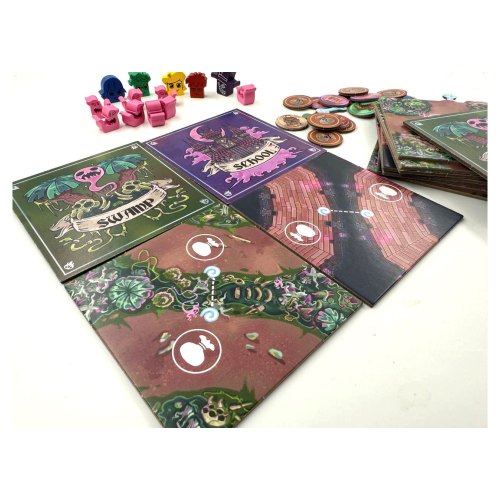 Udforsk skolen og sumpen ved at vende fliser, bevæge jer rundt og samle vigtige genstande. Hvert fuldført ritual giver point og reducerer troldmandens liv på pointtavlen.