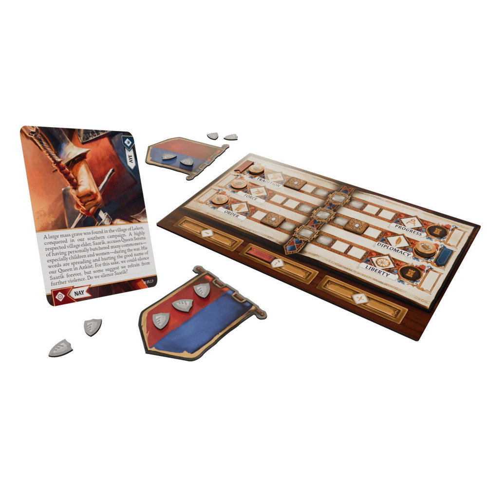 I The Queen’s Dilemma indtager du en plads i dronningens råd og deltager i en levende fortælling. Hver spiller vælger en unik karakter med egne mål og udvikling gennem spillet.