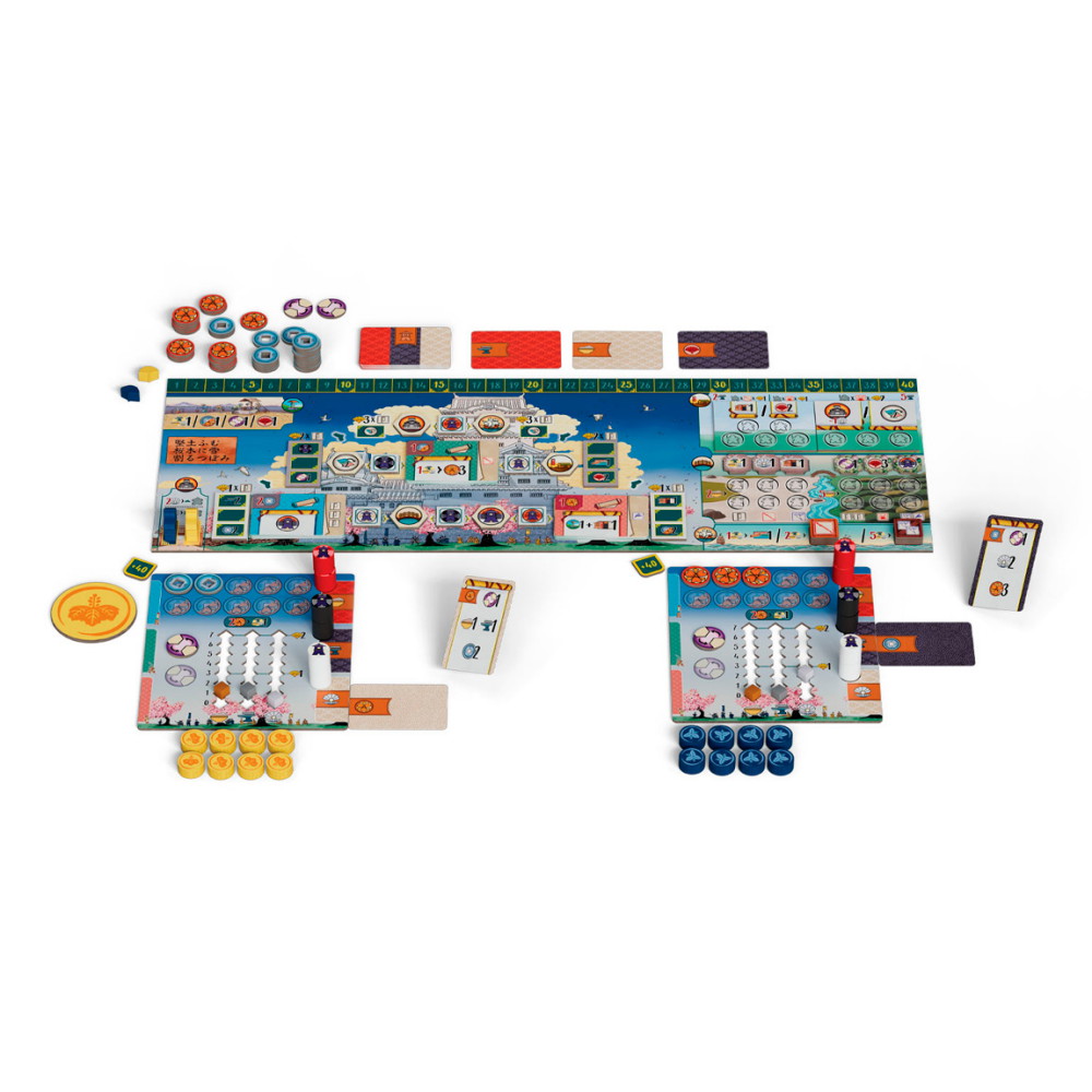 To klaner konkurrerer om at udøve deres indflydelse i den Hvide Hejres hof, forvalter ressourcer og bygger lokomotiver. Brug lampepoletter til at få ressourcer og aktivere handlinger. Blandt de tilgængelige handlinger kan du købe og opgradere indflydelseskort, placere klan-segl på haver og træningspladser, flytte din hofmand mellem indflydelseskredse eller handle med portugiserne. Disse handlinger giver dig mulighed for at samle en række ikoner - flag, katanaer, kabutoer og origamifigurer - der vil belønne dig med point, og den, der ender med flest point, vinder.
