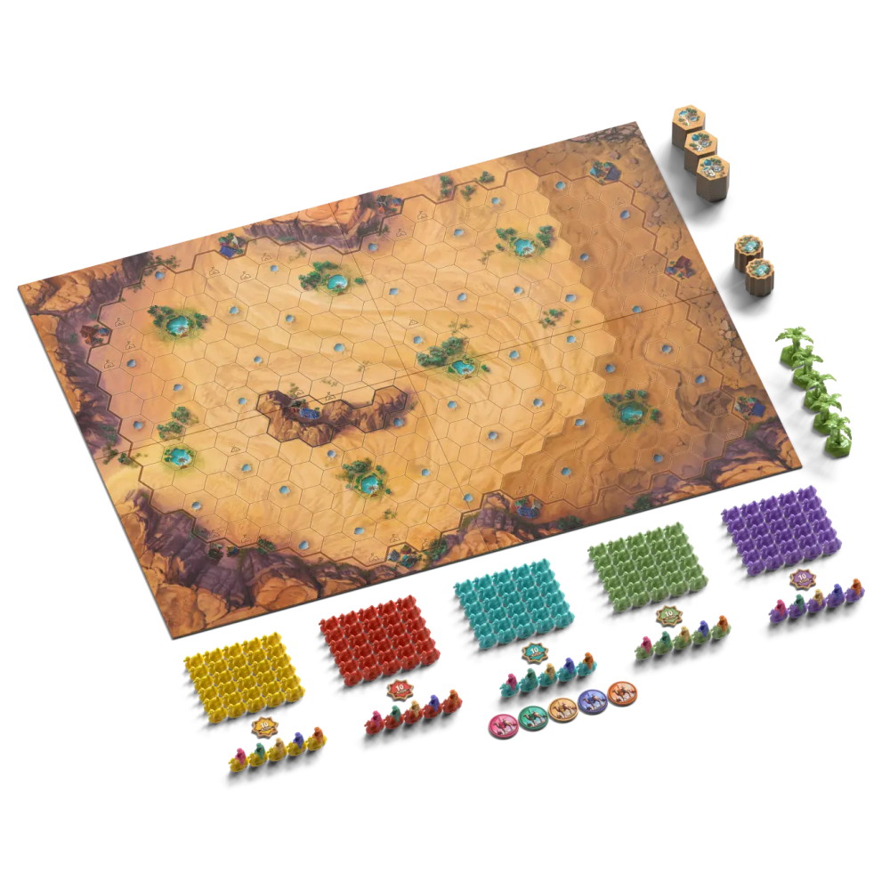 Strategi er afgørende for at beslutte, hvordan og hvor man skal bygge din stams campingvogne. Der er flere måder at få point og flere måder at vinde på. Skal du prøve at bygge den længste campingvogn? Eller skal du dominere ørkenens oaser? Glem ikke at holde øje med dine modstanders campingvogne, eller du kan finde din egen stamme afskåret fra værdifulde vandhuller.