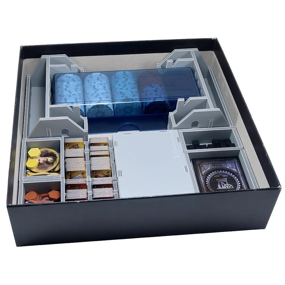 Indsats designet til den almindelige detailspilversion med udvendige boksmål på 30,0 x 30,0 x 5,5 cm, og til Deluxe-spilversionen med målene 30,0 x 30,0 x 7,5 cm.