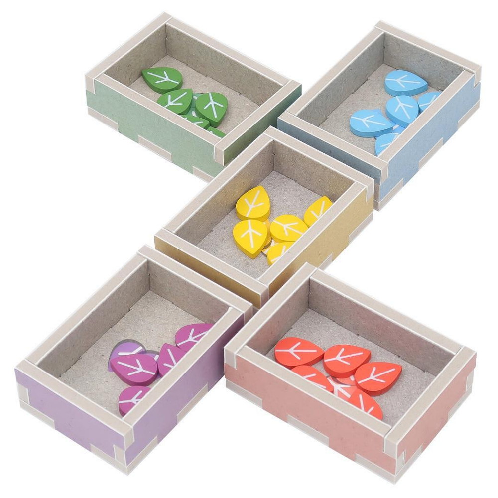 Fuldfarvetrykket bringer virkelig bakkerne til live, hvilket forbinder dem med spillets tema og gør det nemmere at se, hvilke komponenter der skal placeres hvor.