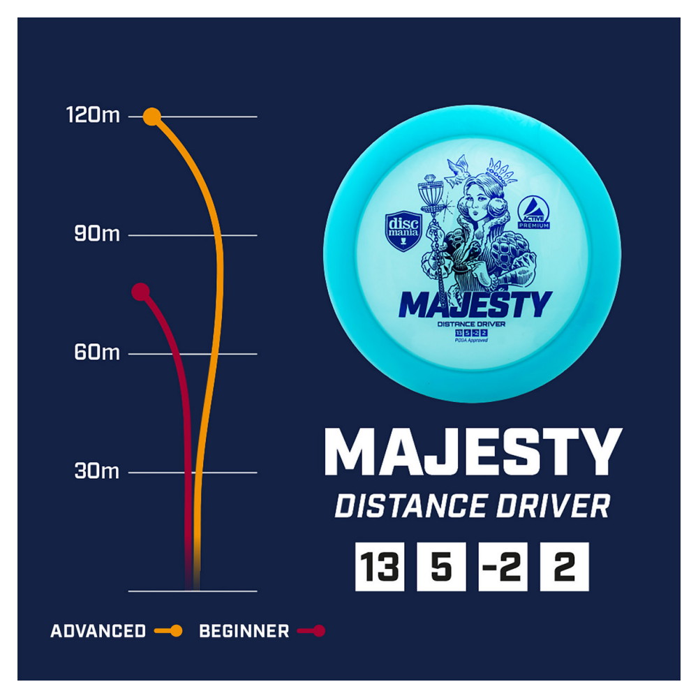 Spillere med mere power vil opleve en let understabil turn i begyndelsen af flyveturen, hvorefter discen vender tilbage til sin stabile bane og afslutter med en pålidelig fade. Det gør Majesty ideel til lange S-kurve kast.
